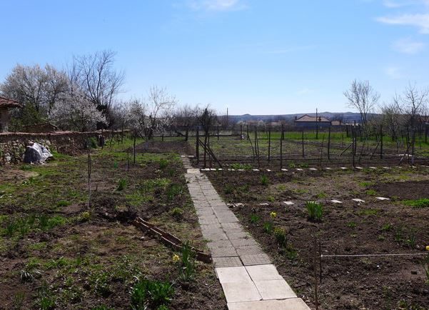 Die Grundstücksgröße beträgt 1150 m². Es ist flach und fruchtbar und leicht zu verarbeiten. Es ist ein Kirschbaum und einige Aprikosen Bäume wachsen in den Garten. Im Sommer alle Garten ist voller Erdbeeren.