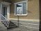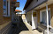 Es gibt eine kleine Veranda, die mit Blick auf den Garten.