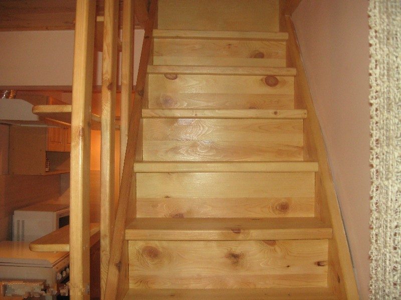 - Erster Stock: Küche und Wohnzimmer, Schlafzimmer, Bad, Treppe in den zweiten Stock.