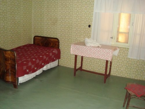 Das Erdgeschoss besteht aus einem Zimmer und einen Keller, mit einem alten gemauerten Ofen.