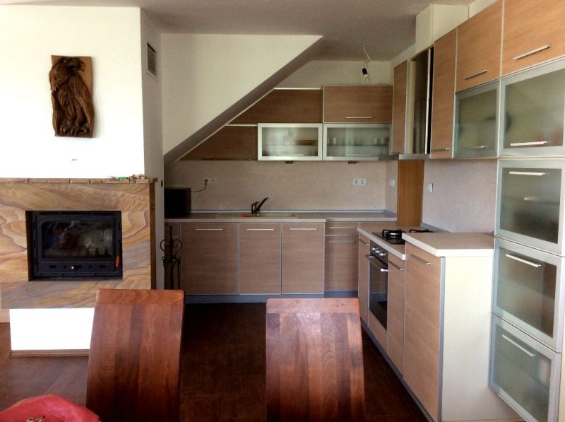 - Etage 1: Veranda, ein geräumiges Wohnzimmer mit Küche, Esszimmer, Badezimmer. Es gibt einen Kamin. Abstellraum und Keller.