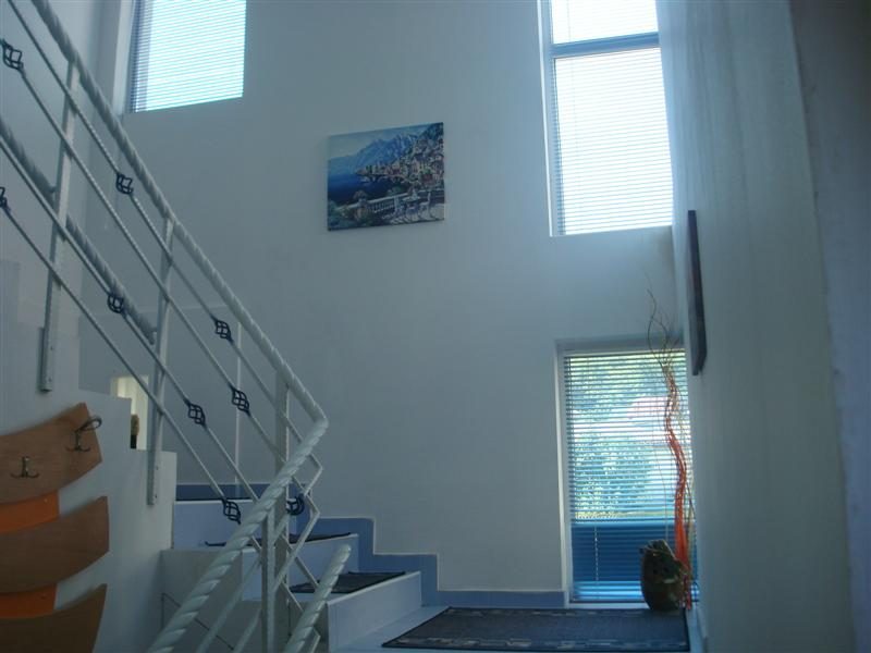 - Erster Stock: Küche und Wohnzimmer, Bad, Abstellraum, Treppenhaus in den zweiten Stock.