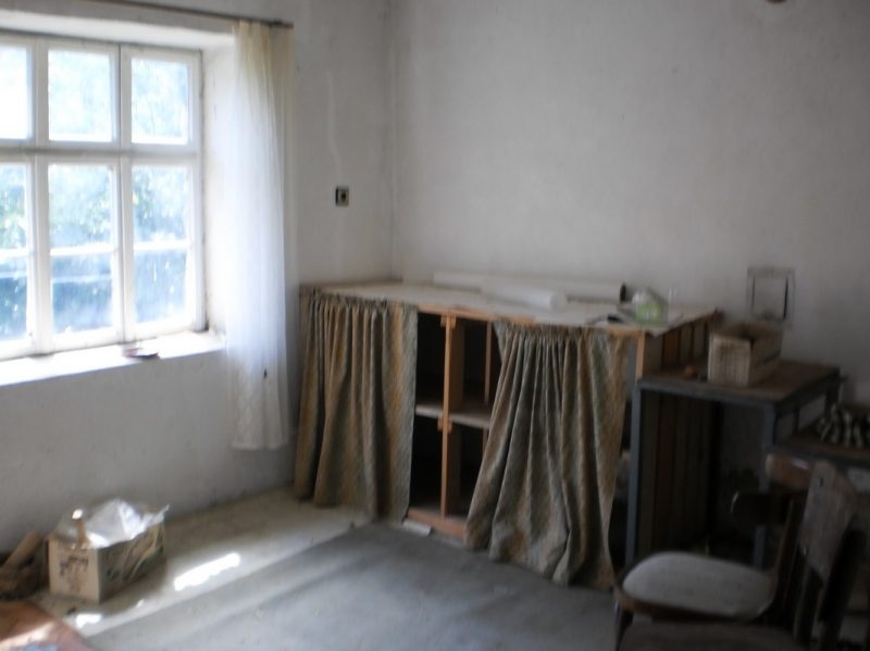 Erdgeschoss: Hier finden Sie eine Flur, zwei Zimmer und ein Badezimmer. Die Wände sind aus Steinen. Der Bodenbelag besteht aus Holz und die Rahmen der Fenster sind aus Holz, zu.
