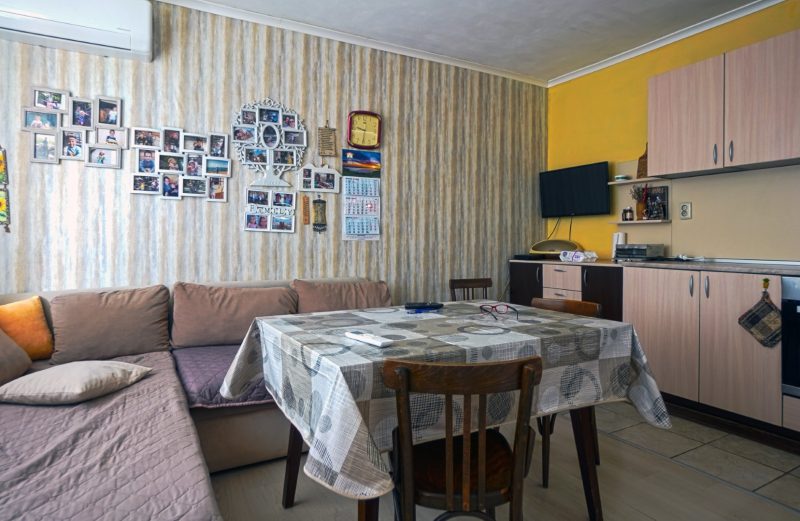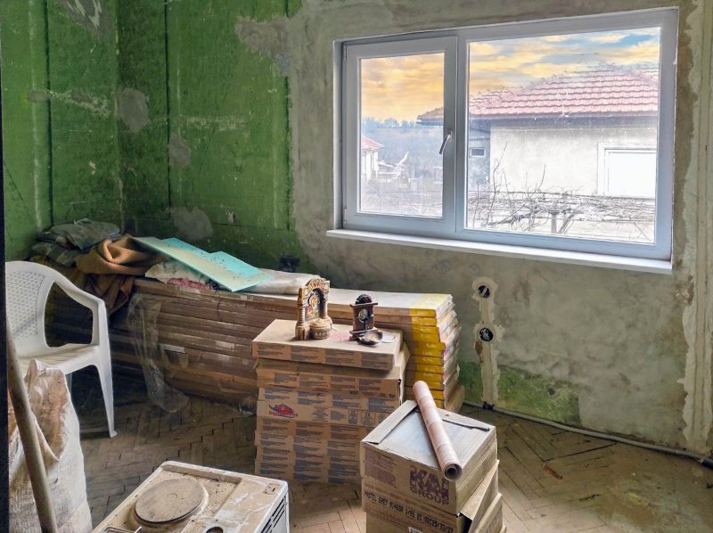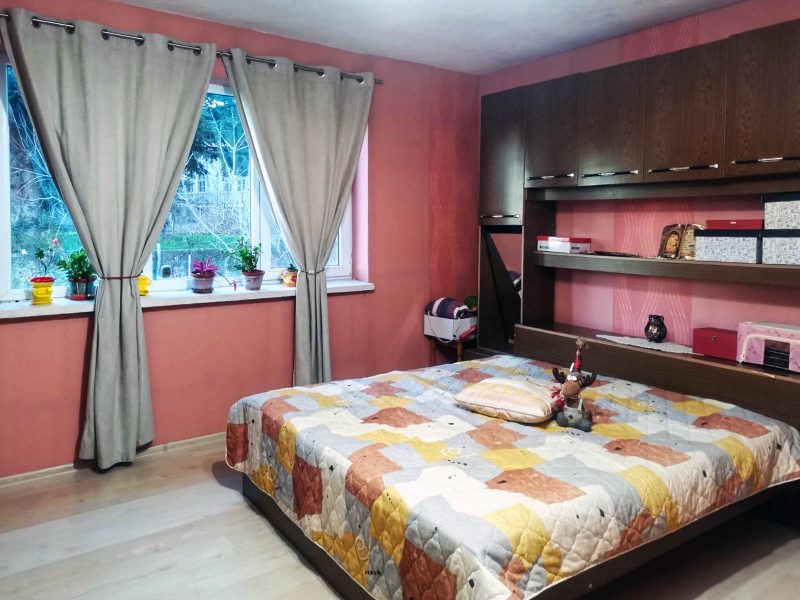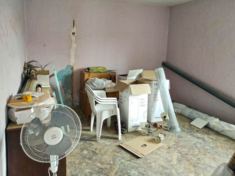 2. Haus mit einer Gesamtfläche von 65 qm – angrenzend (benachbart) an das andere. Besteht aus: Wohnzimmer, Eingangshalle, drei separaten Schlafzimmern mit jeweils einem Badezimmer. Für Abschlussarbeiten, da die meisten Materialien für die Reparatur vorhanden sind.